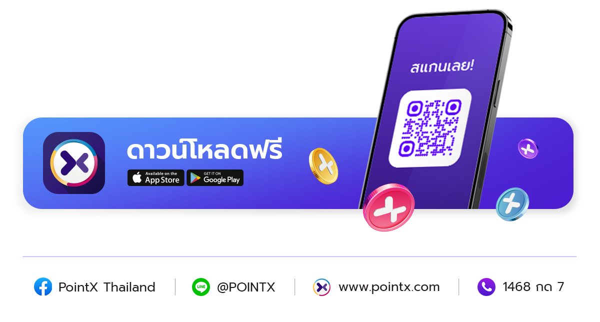 - สอบถามข้อมูลเพิ่มเติมที่ Call Center สำหรับบริการ POINTX โทร. 1468 กด 7