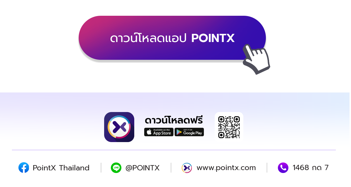 - สอบถามข้อมูลเพิ่มเติมที่ Call Center สำหรับบริการ POINTX โทร. 1468 กด 7